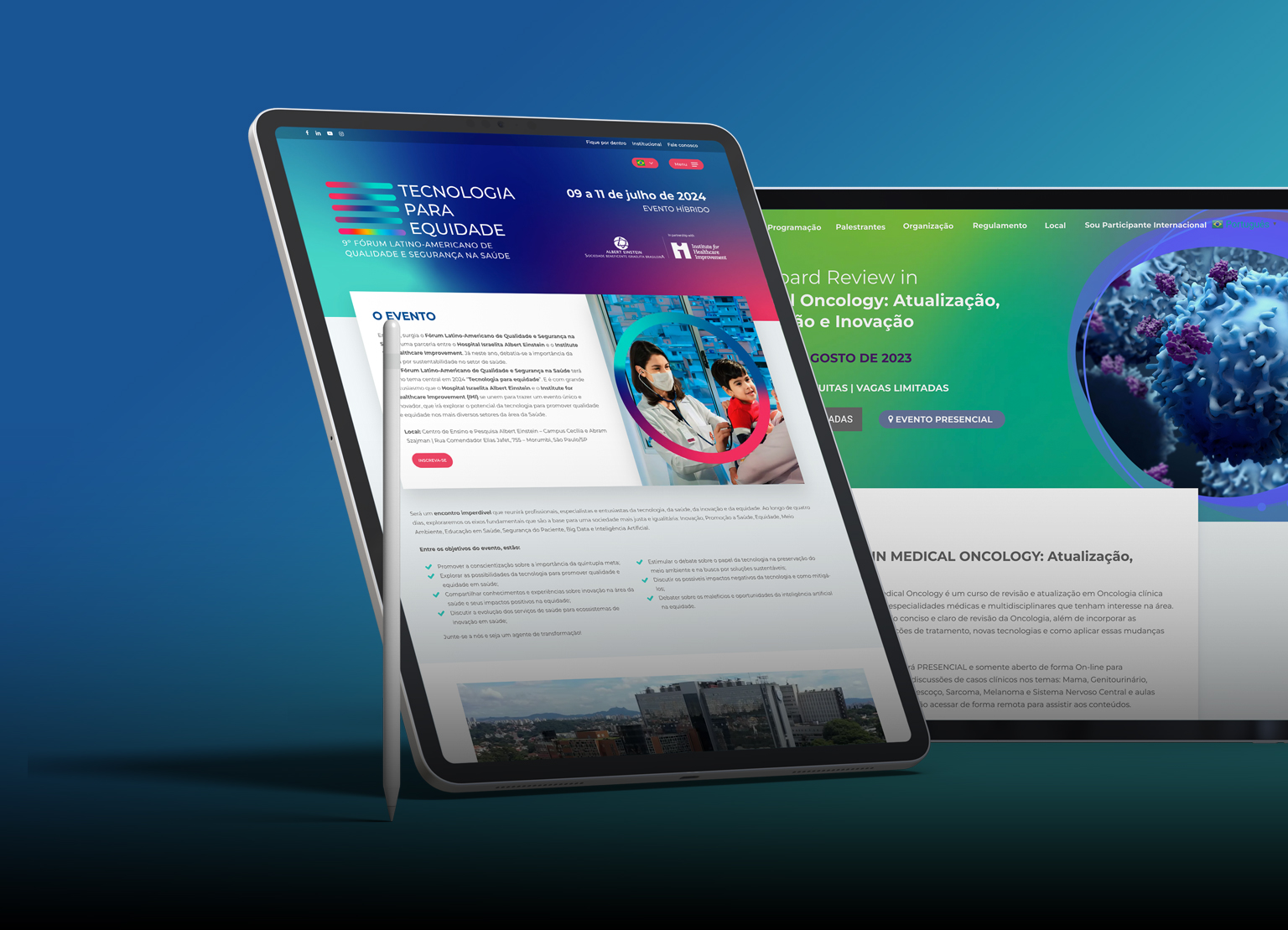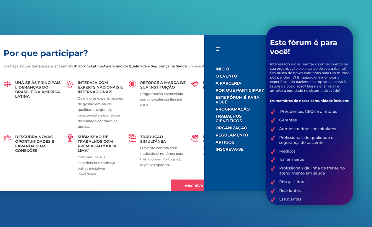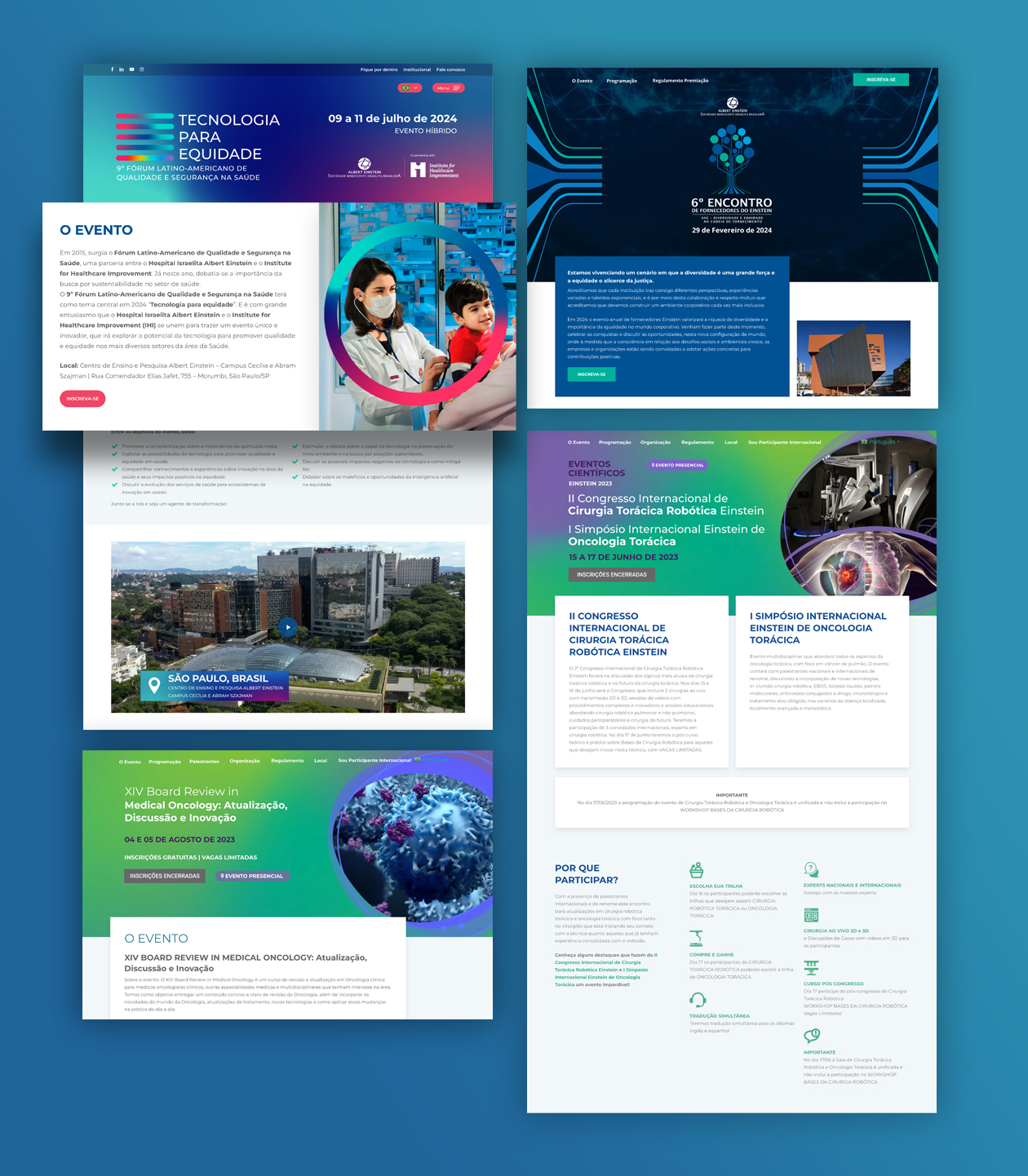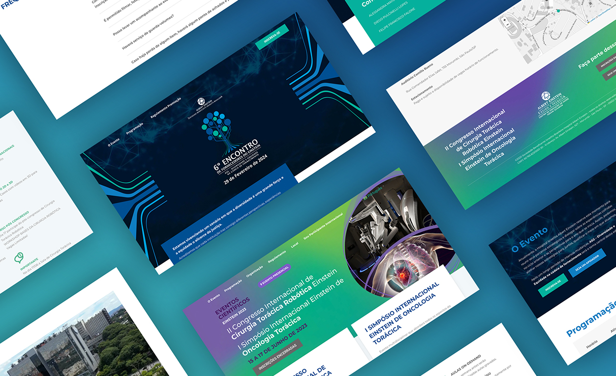 Os eventos promovidos pelo Einstein criam espaços para que os profissionais de saúde compartilhem conhecimentos e novas tecnologias, colocando em foco o que há de mais relevante na área. Pensando nisso, mais que desenvolver um site, criamos um universo de divulgação dos eventos mais importantes realizados pelo hospital.