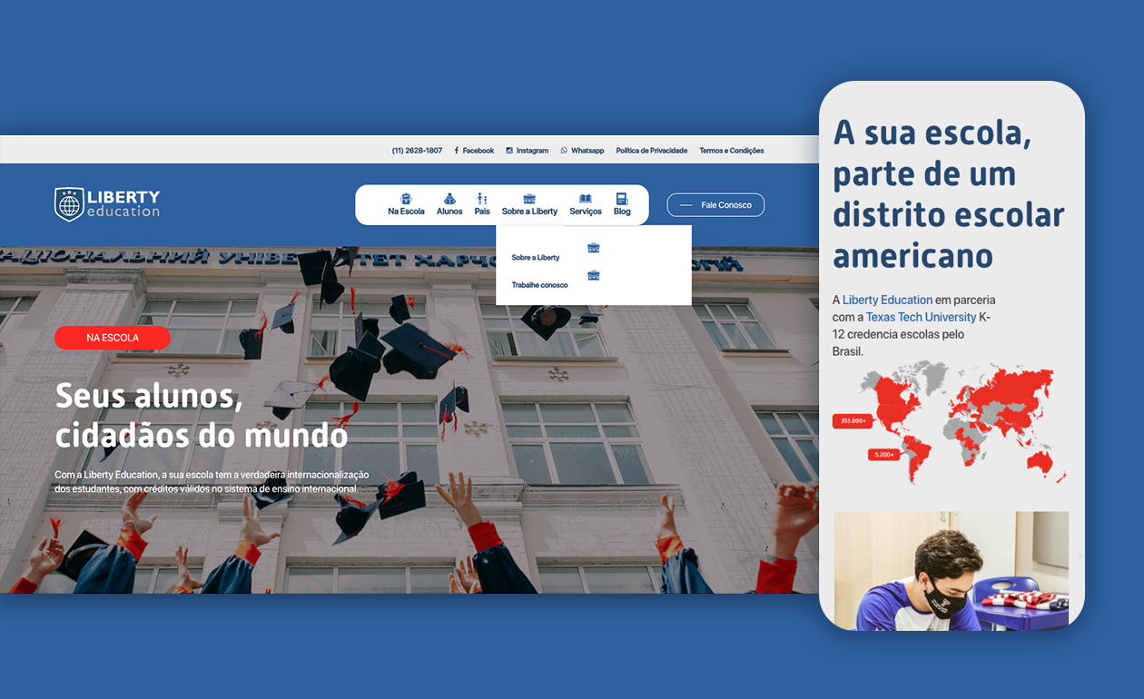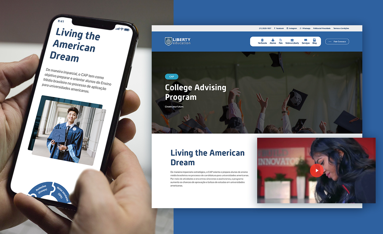 A Liberty Education tem um compromisso com a educação, e a M42, com a melhor experiência de navegação possível. Por isso, para a empresa especialista em programas internacionais, desenvolvemos um site com páginas de conteúdo feitas sob medida pra cada tipo de usuário principal: alunos, pais e escolas.